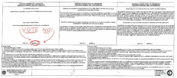 PLEASE REMEMBER THAT THE CONSTITUTIONAL CONVENTION IS PROPOSAL #1 ON THE BACK OF THE BALLOT. DONT FORGET TO TURN THE BALLOT OVER AND MARK (NO) BEFORE CASTING YOUR VOTE.