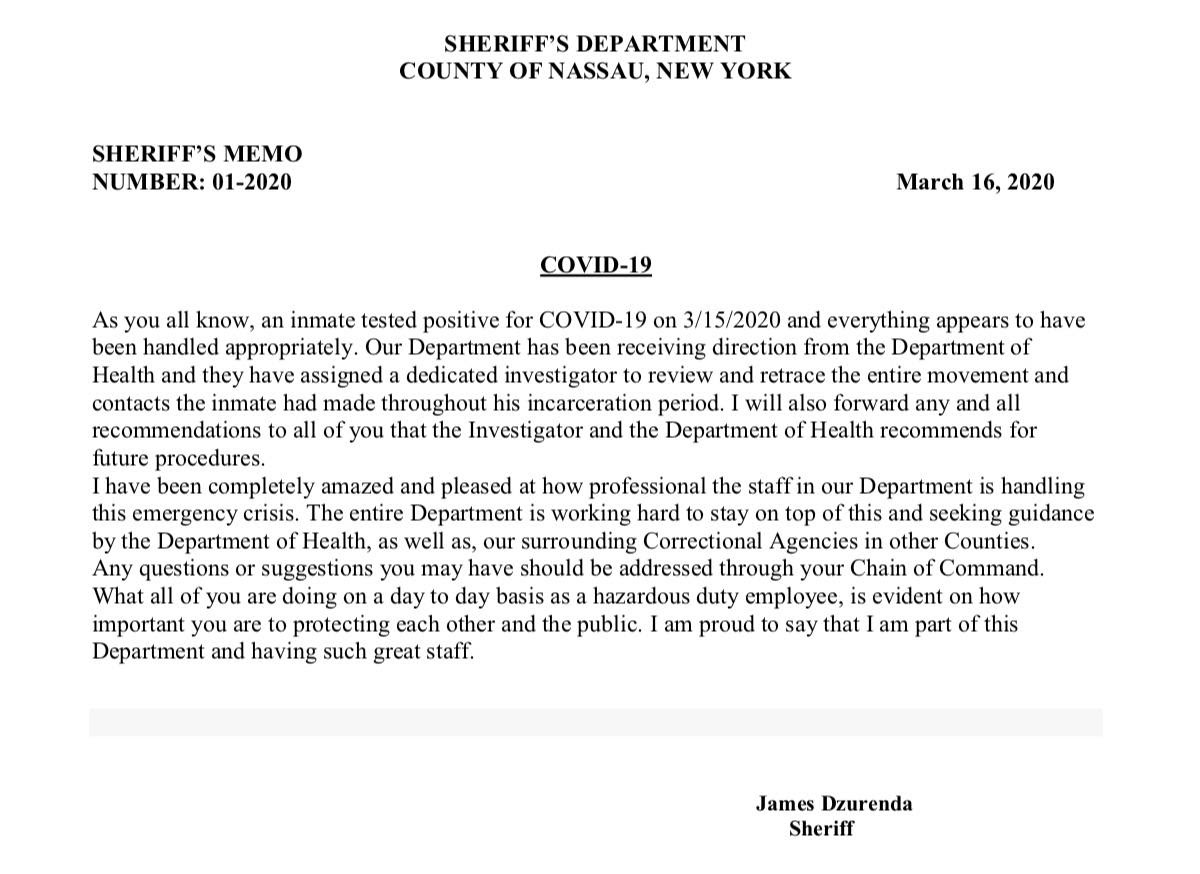 As you all know we had an inmate test positive for COVID-19 last night.