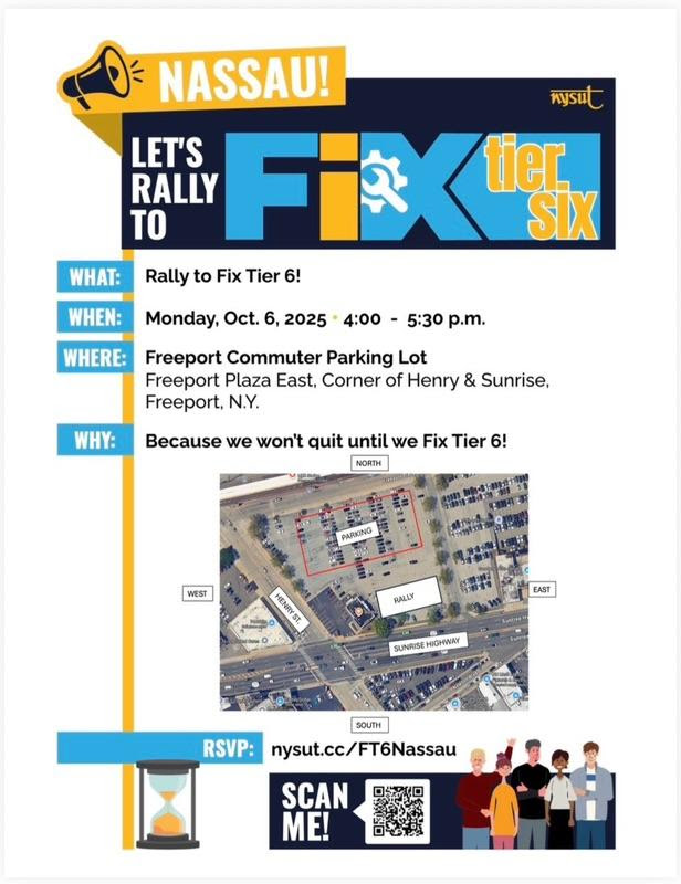 I am writing to invite you to an important rally organized by the teacher's union in collaboration with various Nassau County Law Enforcement Unions. We will be gathering to advocate for necessary changes to Tier Six.